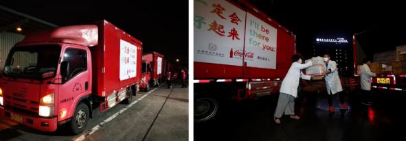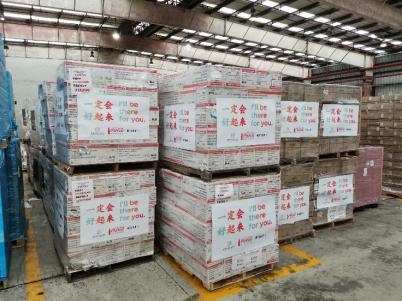 可口可樂(lè)系統(tǒng)員工志愿者在海關(guān)協(xié)助醫(yī)療物資裝車
