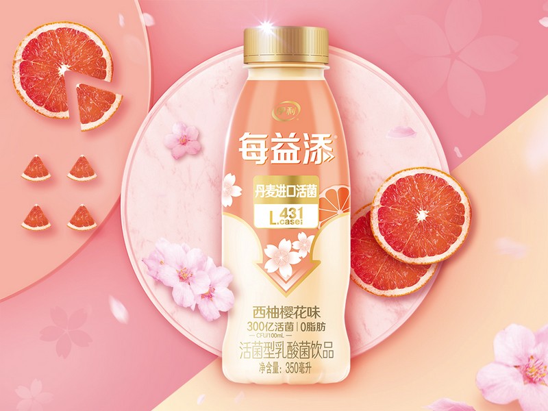 “西柚和櫻花的結(jié)合,花果搭配清新豐富。包裝上,在整體保持每益添品類視覺基調(diào)的一致性的基礎(chǔ)上,添加了花果設(shè)計(jì)元素。視覺顏色上傳達(dá)了櫻花和西柚的混合特征,櫻花的粉和西柚的橙結(jié)合,元素搭配上采用‘小即是多’的原則,幾朵櫻花一片西柚表現(xiàn)了每益添‘快樂簡單無負(fù)擔(dān)’的愿景?!庇?8位產(chǎn)品研發(fā)和市場調(diào)研方面的專家組成的評委團(tuán),圍繞感官體驗(yàn)、理念創(chuàng)新、消費(fèi)者溝通與整體感受等維度,對每益添西柚櫻花創(chuàng)新口味飲品進(jìn)行了評鑒,并給出這樣的評審語。作為伊利旗下唯一專注低溫活性乳酸菌飲品的品牌,每益添始終堅(jiān)持助消化的功能打造,其每100毫升富含300億的丹麥進(jìn)口專屬活菌,從2018年首創(chuàng)百香果創(chuàng)新口味至今,屢創(chuàng)低溫活乳新佳績,引領(lǐng)低溫活乳發(fā)展新潮流。