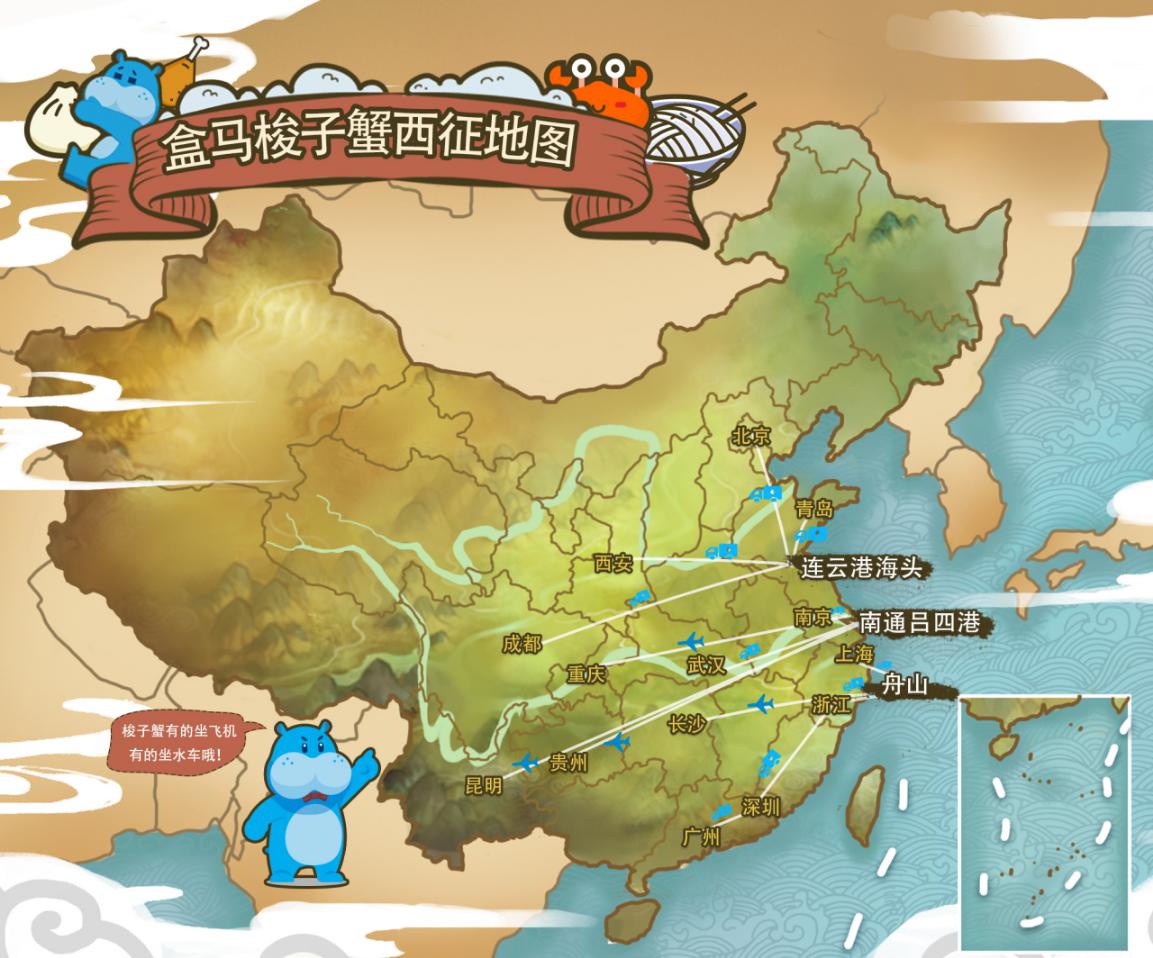 除了浙江舟山,盒馬還在在江蘇呂四、連云港分別設立了直采基地和純海水恒溫暫養(yǎng)倉,每個暫養(yǎng)倉可以容納5萬斤的梭子蟹和皮皮蝦,可以滿足2 -3天的海鮮供應量,并根據(jù)空間距離、物流干線等因素,來調撥供應近20個城市的門店,提升海鮮的鮮活度。