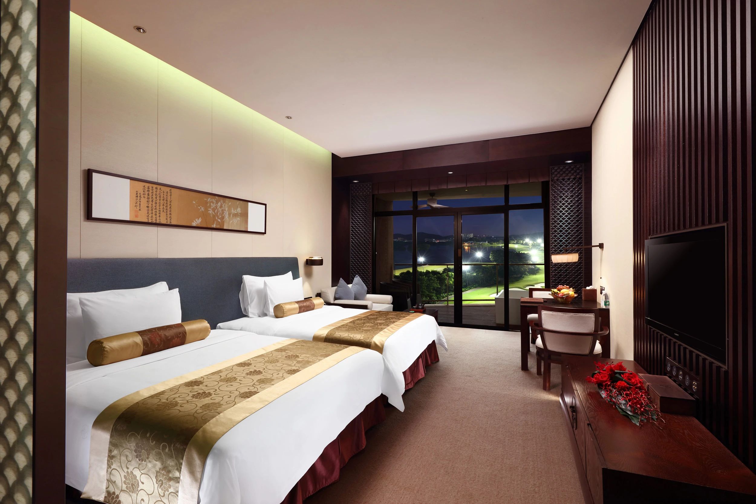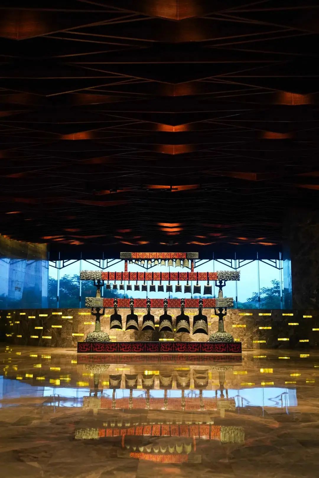 酒店掩映于一片蒼綠之中,從入口嶺南系建筑到大堂1:1還原1978年曾候乙編鐘,處處彰顯著酒店的設(shè)計(jì)巧思。