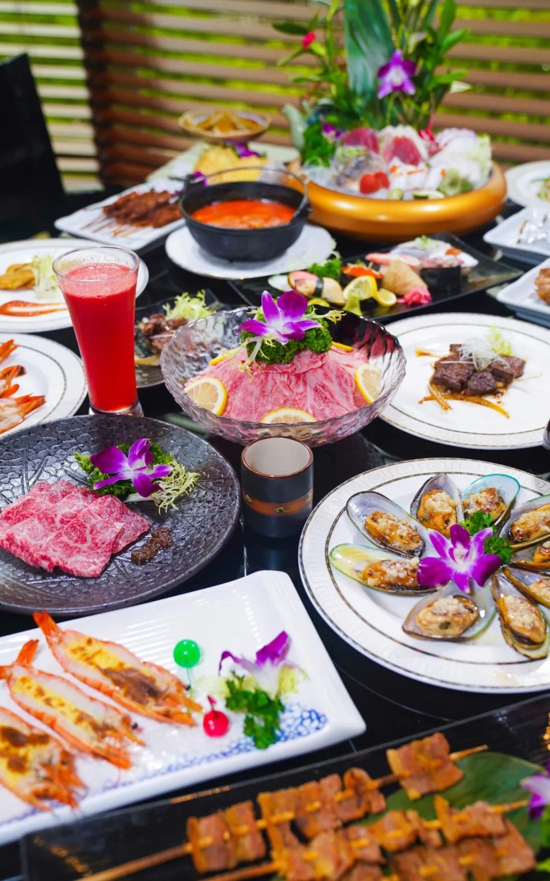 薄至0.1mm的澳洲雪花牛肉、主廚力推的招牌法式鵝肝、烤物之魂網(wǎng)燒牛肉、鐵板燒烤、手握壽司......110+款精致日料任點任食,鋪滿一大桌,實現(xiàn)日料自由,分分鐘吃出1000+的日料既視感。