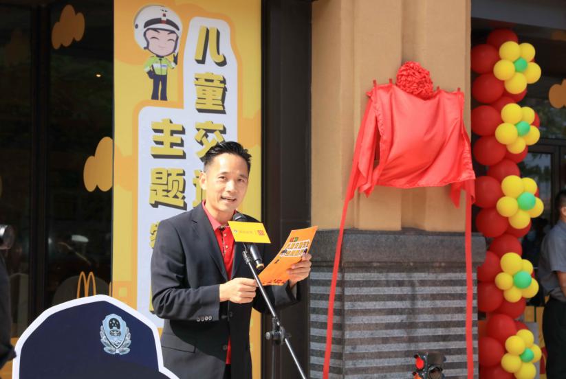 全國首家麥當(dāng)勞兒童交通安全主題餐廳(深圳市福田區(qū)東海城市廣場(chǎng)餐廳)啟動(dòng)儀式上,麥當(dāng)勞深圳市場(chǎng)總經(jīng)理陳影宏致辭