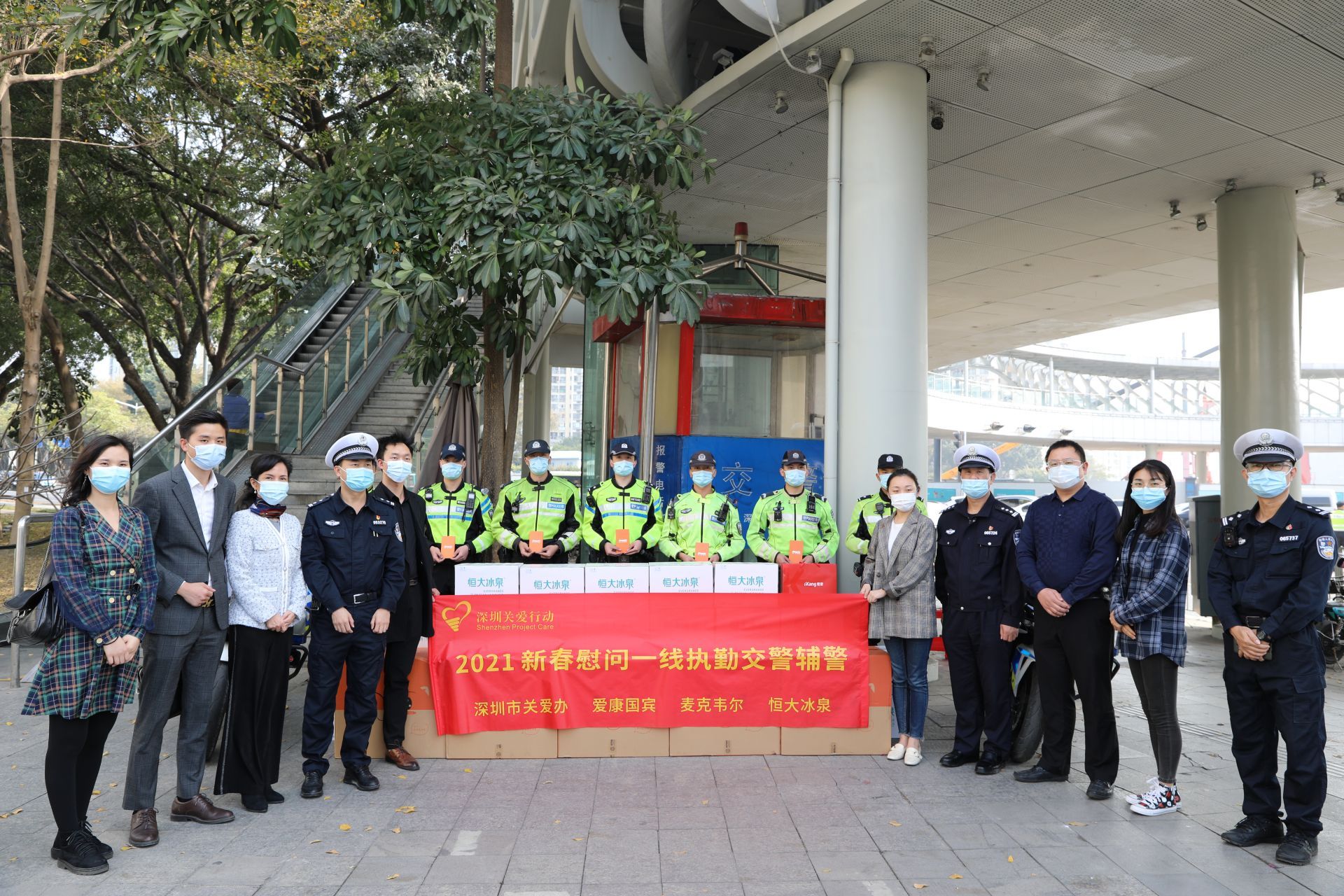 見證客戶端·深圳新聞網(wǎng)2021年1月28日訊(記者 常軍平)“留深過大年,關(guān)愛滿鵬城”。昨日,第十八屆關(guān)愛行動舉行了關(guān)愛交警輔警活動,市關(guān)愛辦聯(lián)合恒大冰泉等五家企業(yè),向南山、光明兩區(qū)交警送去新年大禮包。