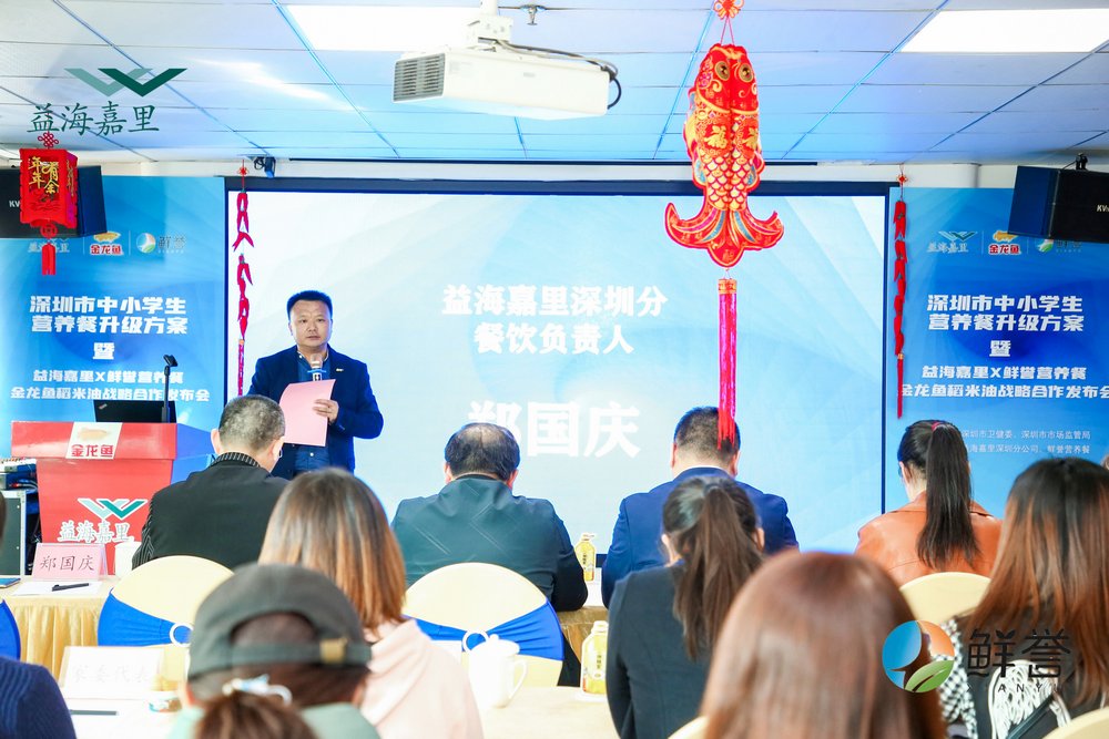 會議開場由益海嘉里深圳分餐飲負責人鄭國慶先生介紹益海嘉里的歷程并對鮮譽營養(yǎng)餐出品表示肯定,隨后鮮譽總經理嚴資旺先生敘述了在營養(yǎng)餐升級過程中的努力,通過營養(yǎng)師和專業(yè)博士對營養(yǎng)餐數據和內容的講述,讓在座的家委代表們更加了解了營養(yǎng)餐升級的必要性和可行性。益海嘉里稻米油項目的張波先生和朱若維女士以視頻的方式講述了金龍魚稻米油的來源以及榮譽,目前金龍魚稻米油已經在日本上市多年并作為中小學生指定用油長期使用。此外,發(fā)布會現場還舉行了益海嘉里與鮮譽戰(zhàn)略合作的授牌及剪彩儀式。