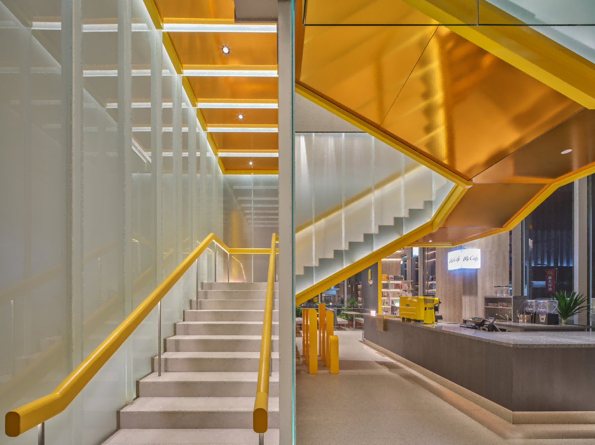 麥當(dāng)勞中國(guó)新總部大樓為獨(dú)棟建筑,共有八層,與麥當(dāng)勞經(jīng)典產(chǎn)品“巨無(wú)霸”層數(shù)一致,錯(cuò)落的樓體外觀酷似魔方?!熬逕o(wú)霸魔方MCHQ”展現(xiàn)了麥當(dāng)勞全球餐飲行業(yè)“巨無(wú)霸”的領(lǐng)先地位,“魔方”般的大樓外觀設(shè)計(jì)也彰顯了麥當(dāng)勞年輕潮流、活力創(chuàng)新的形象。室內(nèi)細(xì)節(jié)也亮點(diǎn)滿(mǎn)滿(mǎn),四至八層使用了專(zhuān)屬的主題配色,標(biāo)志性的 M形樓梯連通核心辦公區(qū)域,創(chuàng)造了更多開(kāi)放協(xié)作的空間感。