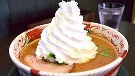 日本神戶市一家餐廳開(kāi)發(fā)了一款“前所未有的拉面”,以紅豆沙為湯,面上澆一層奶油,集咸、辣、甜味為一體,定于2018年初限量供應(yīng)。