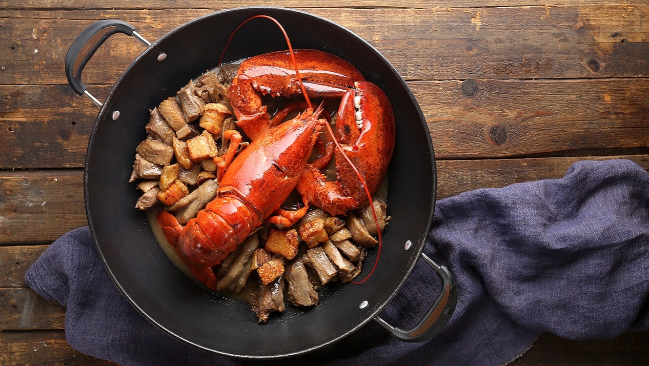 口感豐富(鮮、酸、咸),色彩斑斕(紅、黑、白、綠),富有營養(yǎng)的菌菇番茄蝦滑煲。