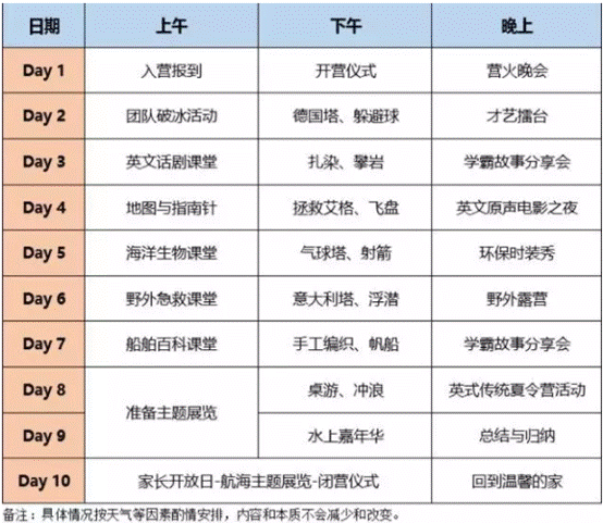 下午:沖浪挑戰(zhàn),水上嘉年華,英式傳統(tǒng)夏令營(yíng),游戲時(shí)間