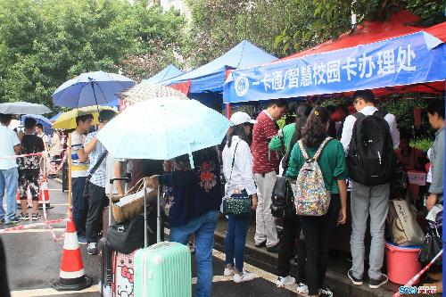 記者隨后跟訪了一名新生報(bào)到入學(xué)的流程。8時(shí)30分,新生小楊在學(xué)門(mén)口被學(xué)生志愿者帶到所在院系報(bào)到。報(bào)到有兩種方式,可選擇現(xiàn)場(chǎng)報(bào)到,也可選擇網(wǎng)絡(luò)報(bào)到,小楊選擇的網(wǎng)絡(luò)報(bào)到。