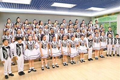 “合唱需要一種力量,叫團(tuán)結(jié)。它給了我一個快樂美好的展示自我的舞臺?!薄皡⒓雍铣獔F(tuán),不但提高了我的音準(zhǔn)和節(jié)奏感,還讓我意識到團(tuán)隊精神、組織紀(jì)律性以及集體榮譽(yù)感。”“因?yàn)楹铣?,我學(xué)會了堅持,不管在臺下練多久多累,都為了臺上絢麗的幾分鐘。”在合唱團(tuán)音樂教室門口,五彩繽紛的音樂小報上展示著孩子們的合唱風(fēng)采,稚嫩的筆觸表達(dá)了孩子們對合唱的熱愛。