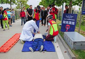 據(jù)了解,本次賽事在賽程中設(shè)有9個(gè)醫(yī)療點(diǎn),每隔3公里即設(shè)立一個(gè),并將沿運(yùn)動(dòng)員跑步路線安排11臺(tái)救護(hù)車、15個(gè)賽道急救組、65名醫(yī)護(hù)人員和135名醫(yī)療志愿者(其中包括40名急救跑者)。除此之外,賽事組委會(huì)還在花都區(qū)人民醫(yī)院、中西醫(yī)結(jié)合醫(yī)院開(kāi)通了綠色通道并成立急救應(yīng)急小組,形成了場(chǎng)內(nèi)、院內(nèi)一體化的醫(yī)療救助系統(tǒng),為賽事醫(yī)療提供全方位支持和保障。