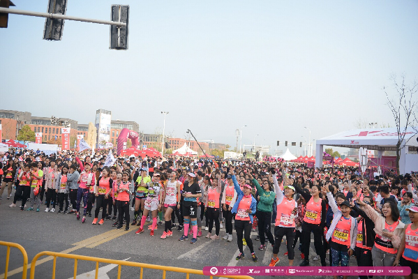 今年賽事現(xiàn)場最大的亮點在于,取消了開賽儀式,僅保留鳴槍一項流程。主會場起點區(qū)域沒有了大型噴繪的主席臺,取而代之的是小巧簡約的發(fā)令臺。上午7點,不間斷的熱身音樂響徹整個甜蜜小鎮(zhèn),運(yùn)動員們在進(jìn)入賽道集結(jié)后,配合著音樂,跟隨著健身教練的指引一起熱身。上午8點30分,鳴槍嘉賓們準(zhǔn)時登臺鳴槍,全體3000多名跑者一起沖出起點門,化作一片粉紅色的海洋,向著終點奔去。“取消開賽儀式對跑者來說是非常貼心的一項舉措,讓我們在進(jìn)入賽道之后依然能夠繼續(xù)熱身,時間一到準(zhǔn)時開跑,整個參賽流程也更加流暢了?!眳①愡x手在賽事現(xiàn)場直言道,簡化起跑前的儀式流程,對于跑者來說是一種更好的參賽體驗。