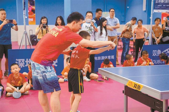 晶報(bào)5月14日訊 5月13日下午,中國(guó)國(guó)家乒乓球隊(duì)運(yùn)動(dòng)員方博、王藝迪出席了“中國(guó)乒乓球隊(duì)進(jìn)校園公益活動(dòng)”。兩位球星與深圳市寶安區(qū)孝德學(xué)校的同學(xué)們開(kāi)展了有趣的乒乓球游戲,在半小時(shí)的互動(dòng)中,同學(xué)們實(shí)現(xiàn)了與球星的零距離交流學(xué)習(xí),體驗(yàn)了乒乓球的多種玩法。