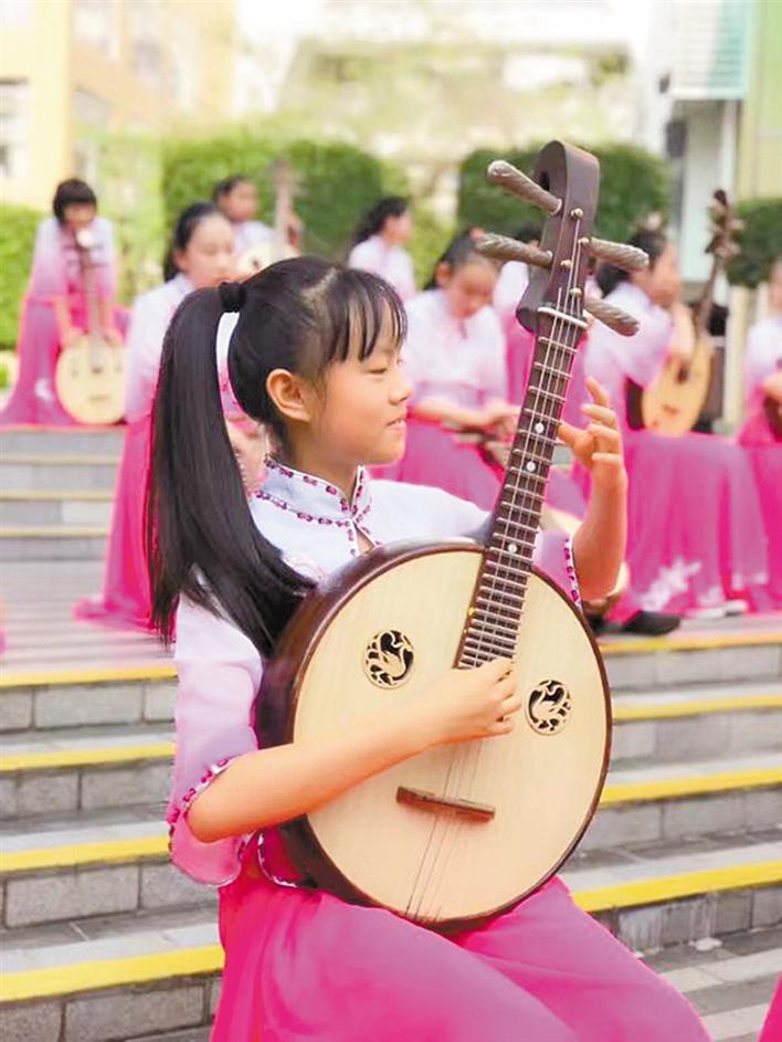 光芒,歷經(jīng)磨礪而綻放;藝術(shù),因堅(jiān)持而精深大成。站立在北京師范大學(xué)南山附屬學(xué)校這方沿海熱土校園,透過(guò)迷人的阮樂(lè),看見的是孩子的心性才情在音樂(lè)的天空綻放,感受到的是千年民族藝術(shù)結(jié)晶在一代又一代的中國(guó)人手中的美妙傳承。