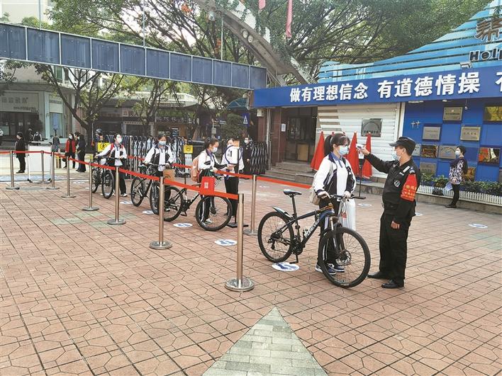 龍城初級中學(xué)學(xué)生騎自行車返校進(jìn)校門走專門的通道。晶報(bào)記者陳利城/攝