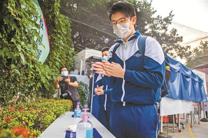 考慮到即將迎來較為炎熱的季節(jié),紅嶺中學(xué)高中部師生入校需要經(jīng)歷3次體溫檢測。據(jù)悉,當(dāng)天該校有1111名高三學(xué)生、202名老師返校,和其他學(xué)校的師生一樣,均經(jīng)過了核酸檢測且都呈陰性。學(xué)生從校門口開始走進(jìn)指定的通道,需要先在消毒池站立消毒,再進(jìn)行人臉識別測溫,然后到洗手池用消毒洗手液洗手后走進(jìn)紅線體溫測量通道,最后才能進(jìn)教室,進(jìn)入教室待身體“冷靜”下來些許后,再次用體溫槍檢測體溫。此外,入校以后每個(gè)學(xué)生還可以領(lǐng)取20個(gè)口罩,這是一周的用量。