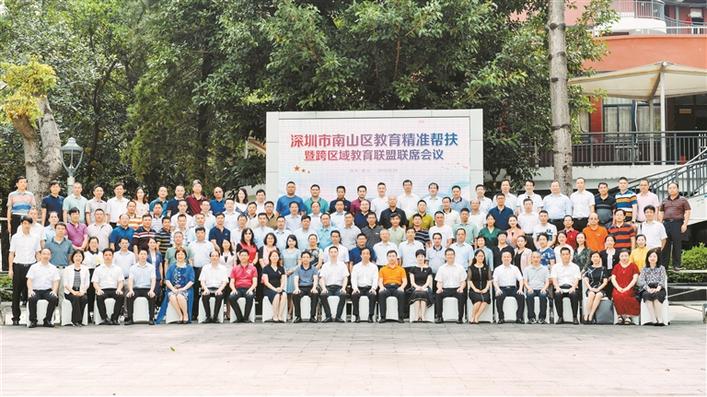 南山區(qū)在全省首創(chuàng)成立南山、連平、百色跨區(qū)域教育聯(lián)盟,先后兩批,共有南山區(qū)四大教育集團(tuán)分別與對(duì)口幫扶學(xué)校結(jié)成跨區(qū)域聯(lián)盟學(xué)校,實(shí)行聯(lián)盟管理,德??h職業(yè)技術(shù)學(xué)校加入南山職教集團(tuán)成為會(huì)員單位。2018年以來(lái),南山跨區(qū)域教育聯(lián)盟集團(tuán)的四位總校校長(zhǎng)帶領(lǐng)師生百余人赴三地聯(lián)盟學(xué)校,把南山優(yōu)質(zhì)教育資源向幫扶地區(qū)輻射。