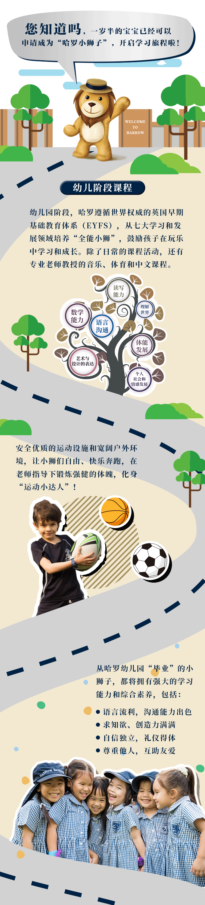 今天,我們就來(lái)用一張圖帶您讀懂,哈羅K-12課程內(nèi)容。了解孩子從哈羅的幼兒園到高中畢業(yè)班將從課內(nèi)課外學(xué)些什么、重點(diǎn)培養(yǎng)哪些出眾技能(K-12,即幼兒園至高中的教育)。為躋身著名大學(xué)做充足準(zhǔn)備想了解更多?下拉至文末掃碼關(guān)注哈羅深圳前海官方微信,了解學(xué)校最新動(dòng)態(tài)!