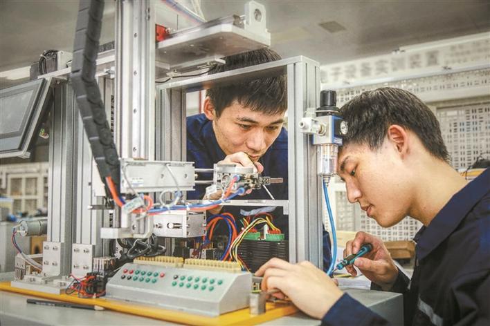 此外,深圳緊貼城市產(chǎn)業(yè)需求,大力建設(shè)世界一流職業(yè)教育體系;加強(qiáng)職業(yè)院校建設(shè)力度,高標(biāo)準(zhǔn)規(guī)劃建設(shè)職業(yè)教育園區(qū)和一批新型職業(yè)院校,未來3年將新增職業(yè)教育學(xué)位1.8萬個(gè);加大財(cái)政投入保障,近5年,全市財(cái)政職業(yè)教育投入260多億元;聚焦時(shí)代前沿,加快學(xué)科專業(yè)轉(zhuǎn)型,增設(shè)云計(jì)算、大數(shù)據(jù)、人工智能等新興專業(yè),一批傳統(tǒng)專業(yè)實(shí)現(xiàn)內(nèi)涵升級(jí),加快推動(dòng)人才培養(yǎng)方式轉(zhuǎn)型;實(shí)施“六融合”人才培養(yǎng)模式改革,推進(jìn)產(chǎn)教融合、職普融合、理實(shí)融合、教育與生活融合、技術(shù)與文化融合、現(xiàn)代信息技術(shù)與教學(xué)融合;在全國率先探索“政府出補(bǔ)貼、企業(yè)出場(chǎng)地、校企共建共享”建設(shè)模式,累計(jì)投入資金3.5億元,建成產(chǎn)教融合實(shí)訓(xùn)基地219個(gè)。