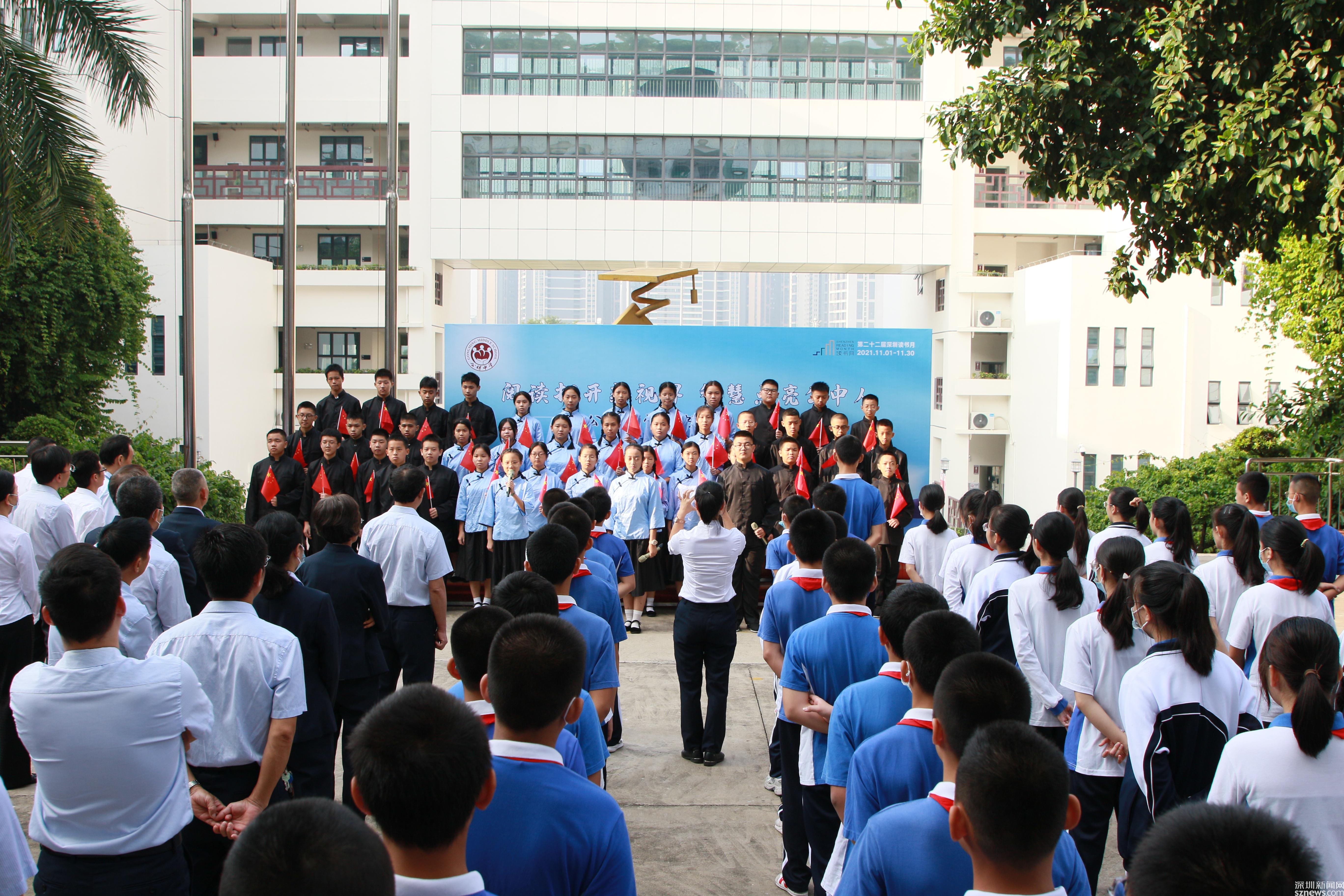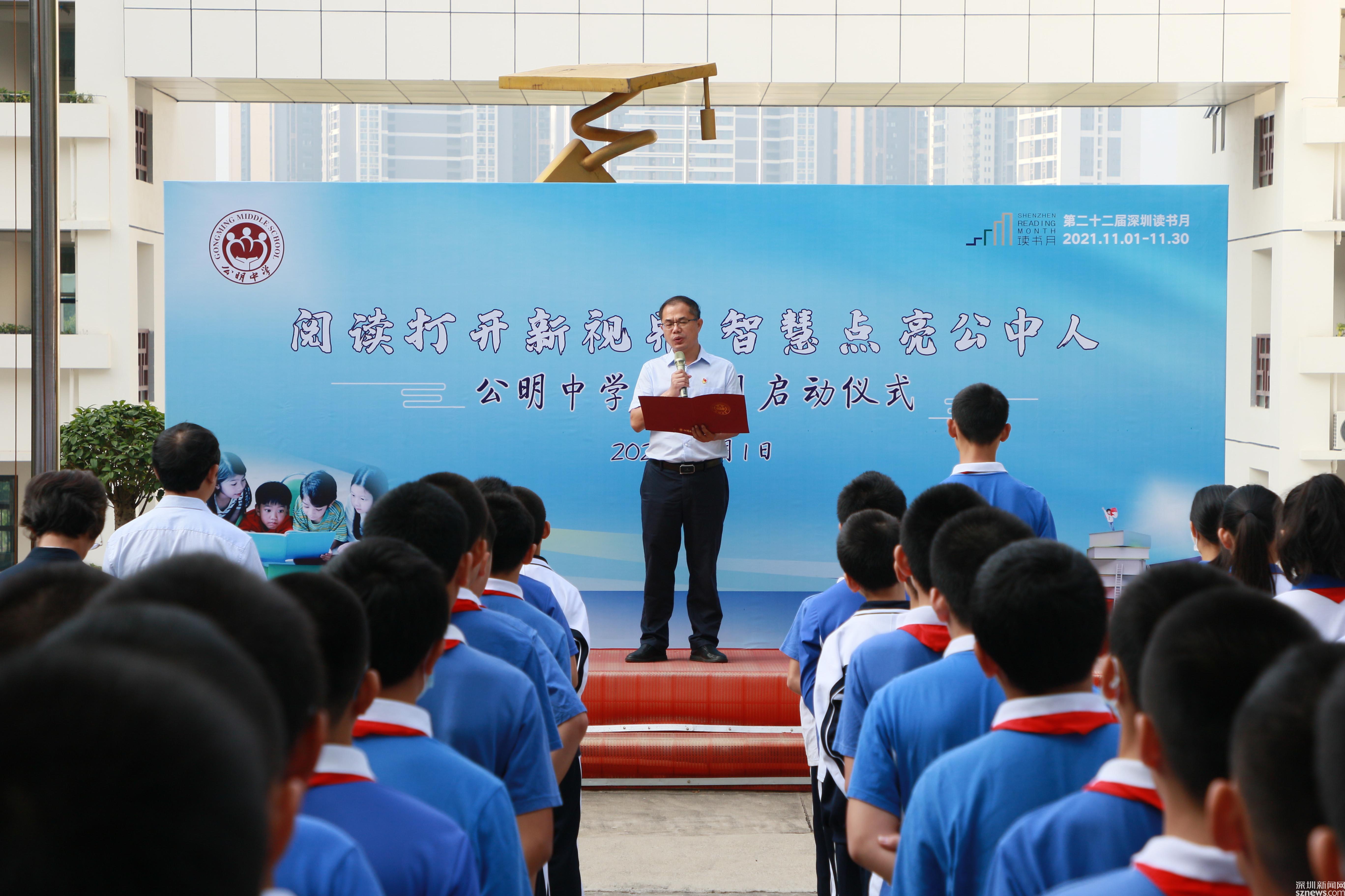 讀特客戶端·深圳新聞網(wǎng)2021年11月2日訊 (記者 曹園芳 通訊員 丘翹楚 劉小云 曾靜敏)為弘揚(yáng)“尊重知識(shí)崇尚文明”的閱讀理念,培養(yǎng)師生良好的閱讀習(xí)慣,營(yíng)造智雅的學(xué)習(xí)氛圍,塑造濃郁書香學(xué)習(xí)型校園,11月1日上午,深圳市光明區(qū)公明中學(xué)組織開展了本年度讀書月啟動(dòng)儀式,全校師生參加了活動(dòng),活動(dòng)由初二(5)班譚欣怡同學(xué)主持。