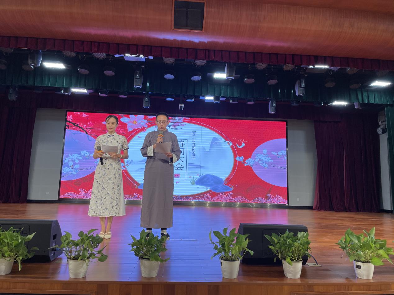 在甘坑社區(qū)廣場,現(xiàn)場早早搭起了舞臺,來自甘李學(xué)校的17名優(yōu)秀古詩詞愛好者躊躇滿志、躍躍欲試,甘坑社區(qū)黨委副書記魏阿妮親自擔(dān)任活動主持人,選手們輪番上場,為評委及社區(qū)居民呈現(xiàn)了一場精彩的文化活動。