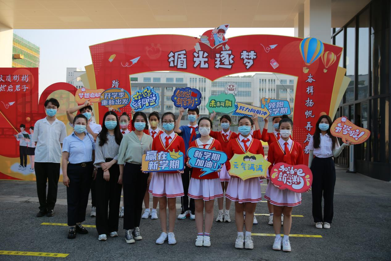 “開學(xué)季,重新出發(fā)”“新學(xué)期加油!”“歡迎新同學(xué)”……返校當(dāng)天,公明中學(xué)特別制作了歡迎展板,并安排了教師和學(xué)生代表在校門口歡迎學(xué)生返校,溫馨的氛圍充滿校園。學(xué)校校醫(yī)、交警和家長義工等也早早就位,學(xué)校打擊樂團(tuán)用歡快的鼓聲為學(xué)子們加油助威,老師們則帶著甜甜的笑容為同學(xué)們送上新學(xué)年的第一份禮物——多彩繽紛的文具盲盒,令學(xué)子們感到驚喜不已。