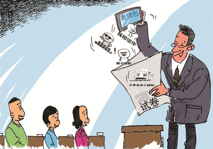 這份試卷上不僅有習題,還印有帶表情包的有趣語句。如“做對這套題,我相信你就是二中最靚的仔”是試卷最后的配字,其中“我相信你”采用了表情包的形式展示,讓人看了忍俊不禁。