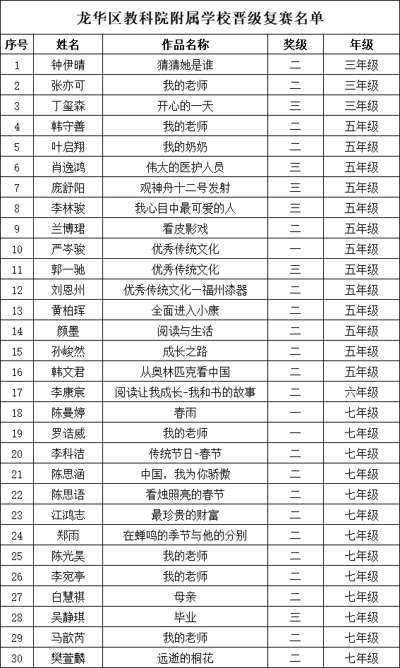 冰心文學(xué)盛典 | 龍華區(qū)教科院附屬學(xué)校晉級復(fù)賽名單公布