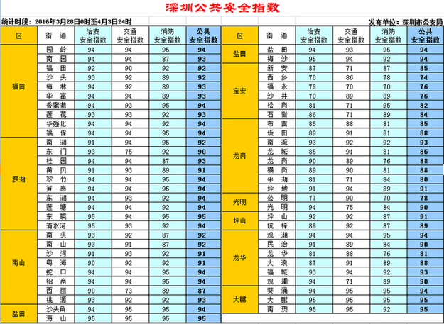 深圳新聞網(wǎng)訊 深圳市公安局圍繞市委市政府“城市管理治理年”工作部署要求,借鑒國內(nèi)其他城市的成功做法,將于4月5日開始,每周通過《深圳特區(qū)報》、《深圳新聞網(wǎng)》、市公安局門戶網(wǎng)站、公安微信、微博,向社會發(fā)布一次深圳公共安全指數(shù),保障市民群眾知情權(quán)、監(jiān)督權(quán),引導(dǎo)社會各界廣泛參與 “平安深圳”建設(shè)。