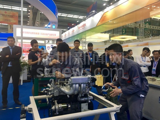 寶安職業(yè)技術(shù)學(xué)院學(xué)生現(xiàn)場(chǎng)進(jìn)行汽車發(fā)動(dòng)機(jī)拆裝與檢測(cè)