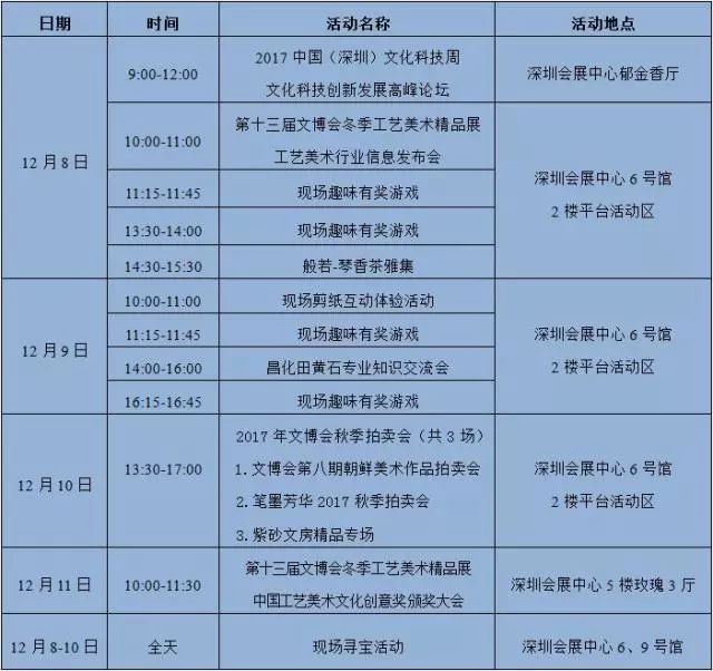第十三屆文博會冬季工藝美術精品展暨2017中國(深圳)文化科技周活動安排!