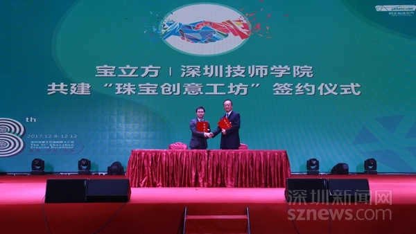寶立方與深圳技師學(xué)院就“共建珠寶創(chuàng)意工坊”、“專業(yè)技能競賽活動(dòng)”舉行了校企合作簽約儀式