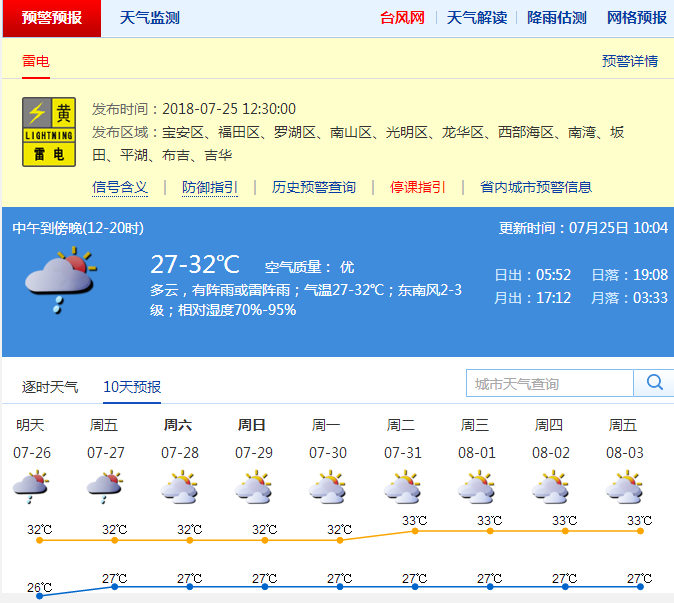 深圳新聞網(wǎng)訊 在熱帶低壓殘余環(huán)流影響下,鵬城昨日延續(xù)陣雨天氣,局部出現(xiàn)大雨。市氣象臺預測,未來兩天,仍有陣雨或雷雨,市民應注意防范。