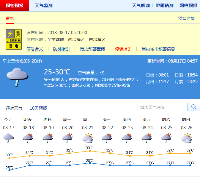 深圳新聞網(wǎng)訊(記者 施冰冰)深圳市氣象臺預計,17日深圳多云間陰天,有陣雨,部分時間雨勢較大,氣溫26-30℃;18-19日多云,間中有陣雨或雷陣雨;20日起陽光增多,偶有短時陣雨,天氣趨于炎熱。