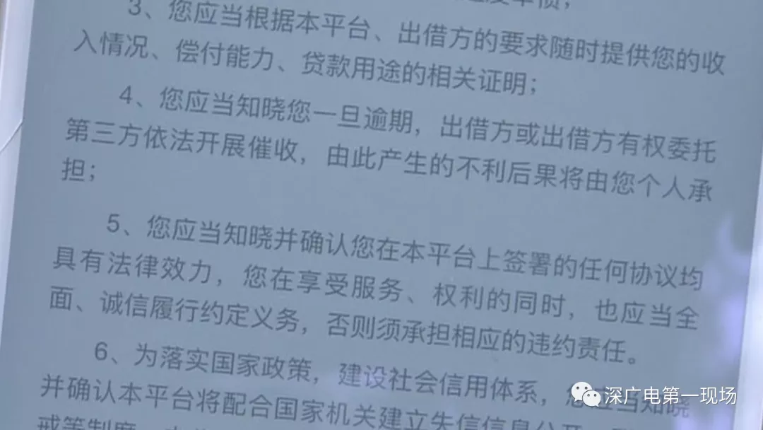 目前,盧先生已經(jīng)結(jié)清了前兩期的還款和逾期費(fèi)用,記者在借貸平臺的風(fēng)險告知書看到,第四條寫明借款人一旦逾期,出借方有權(quán)委托第三方依法開展催收。