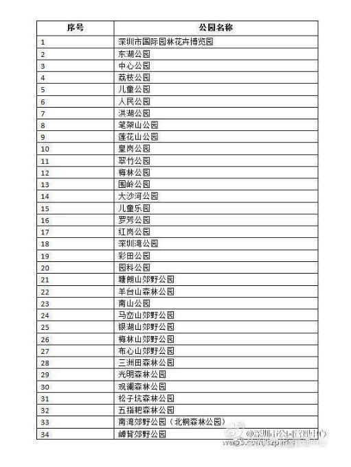 奉上公園名單!