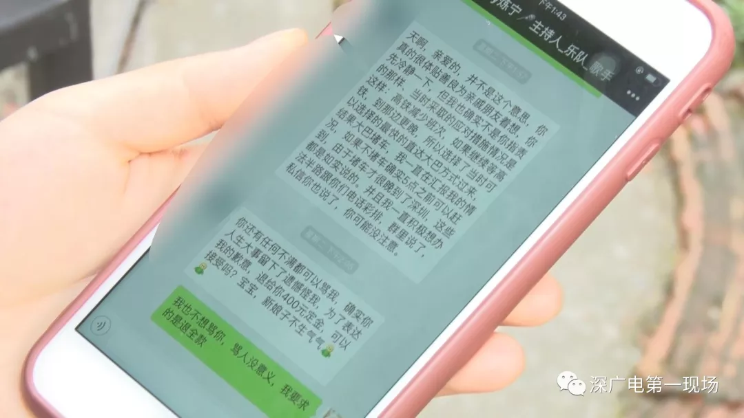 事情發(fā)生之后,李女士也多次和司儀小寧進行溝通,要求對方退還全部訂金或者當面賠禮道歉,一開始對方的態(tài)度還很好,并且退還了400元的定金,但最近幾天就不怎么搭理了。