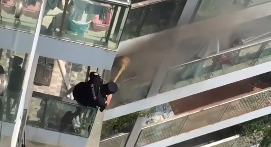 一群保安從13樓翻入12樓陽(yáng)臺(tái)