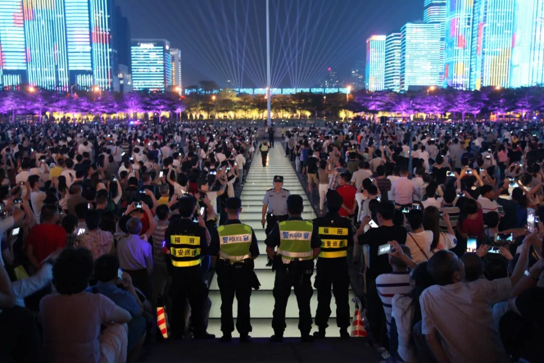 “燈光秀”活動(dòng)正式表演首日,現(xiàn)場觀演人數(shù)約54300人,福田公安分局出動(dòng)1000名警力在現(xiàn)場及周邊維持秩序,確?;顒?dòng)順序舉行。