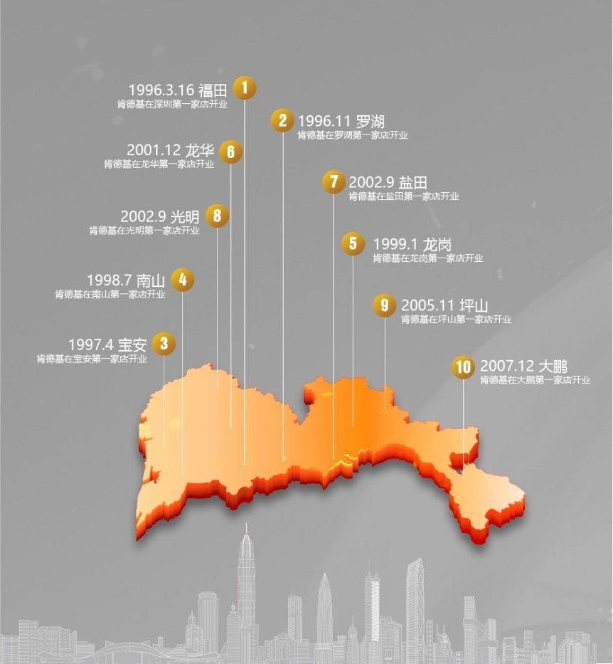 2007年,是深圳的大年份,也是肯德基的大年份。2007年,深圳人均GDP達(dá)到10684美元,首次超過(guò)1萬(wàn)美元??系禄拈_店數(shù)量也在那一年突破了100家,達(dá)到108家。同時(shí),肯德基完成了對(duì)現(xiàn)在深圳十區(qū)的開店布局。