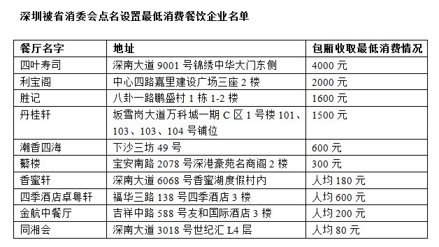 原標(biāo)題:餐館仍設(shè)最低消費(fèi)深圳10家餐飲企業(yè)被省消委會(huì)點(diǎn)名