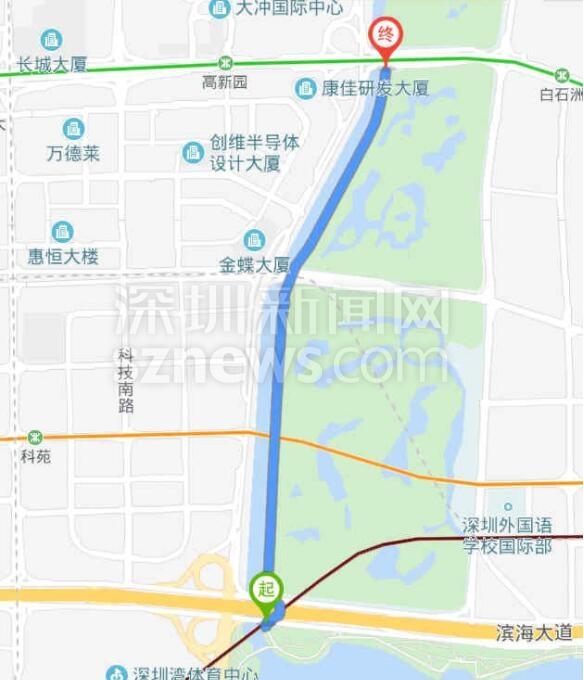 該網(wǎng)友在帖文中稱,聽聞濱海沙河西立交橋下到深南沙河西天橋的騎行路段今年9月份開通了,于是他周末帶著孩子沿沙河?xùn)|側(cè)騎行,準備一睹深圳最美騎行路段的風景。由于周末限騎行原則,該網(wǎng)友被迫輾轉(zhuǎn)數(shù)次才到達大沙河公園。具體騎行路程如下: