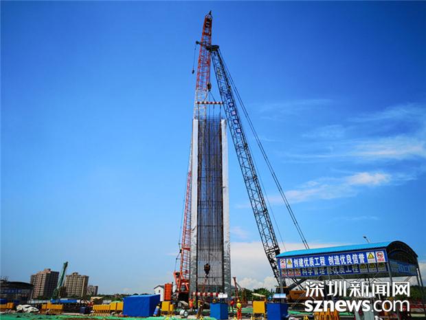 深圳地鐵12號線海上田園東站正在進(jìn)行地連墻吊裝作業(yè)