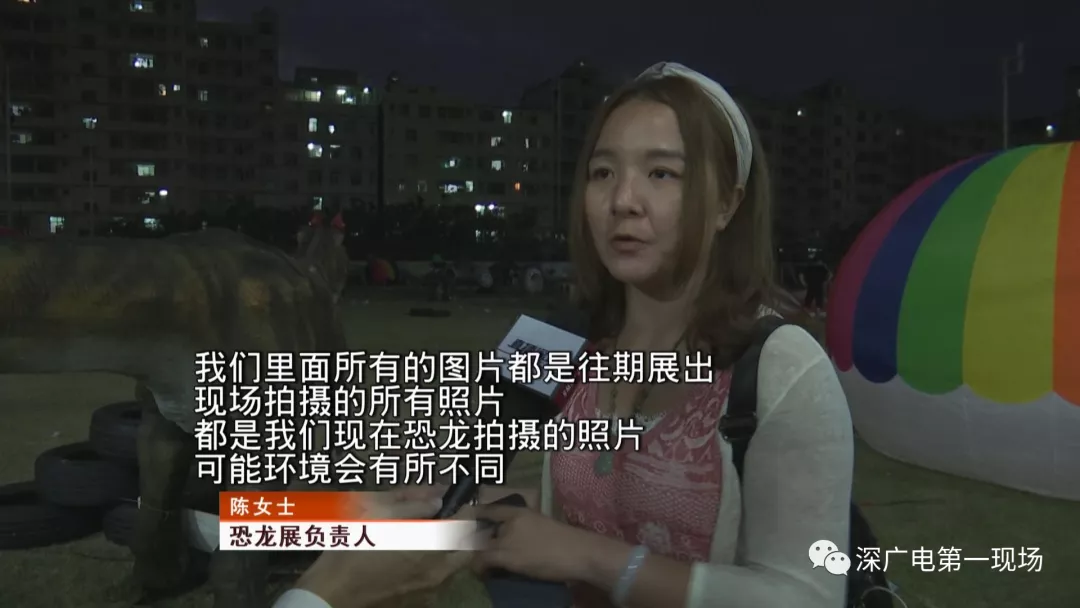 恐龍展負(fù)責(zé)人陳小姐說:“我們里面所有的圖片都是往期展出,可能環(huán)境會有所不同,因為以前我們有在生態(tài)園公園、景區(qū)里面辦,是有一些樹木為背景的,因為我們這里只有一大片草地,可能看起來的話,造景不太美觀?!?/p>