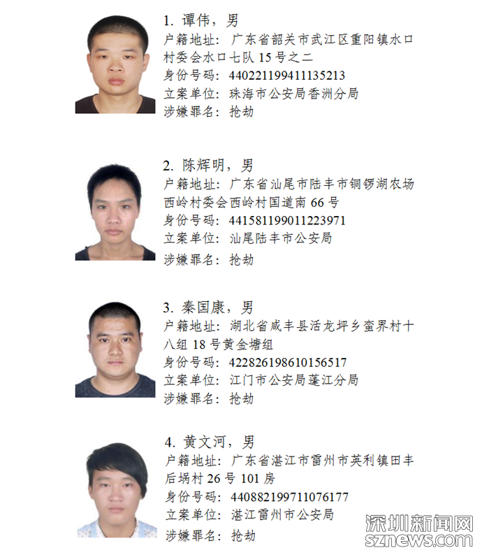 深圳新聞網(wǎng)11月5日訊(記者何暢)廣東省公安廳近日發(fā)布懸賞通告:廣東省公安廳決定從即日起公開(kāi)懸賞通緝30名在逃涉盜搶騙犯罪嫌疑人,希望廣大人民群眾積極提供在逃犯罪嫌疑人線索。