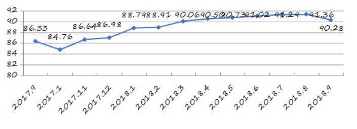 9月份羅湖區(qū)城市交通文明指數(shù)為90.35分,比上月增加1.51分,比上年同期增加4.52分,創(chuàng)下監(jiān)測以來最高分,全市排名第二(見圖6)。
