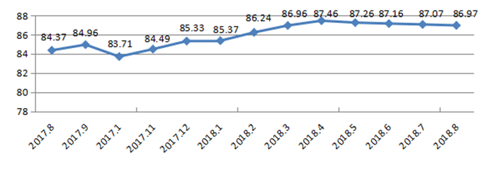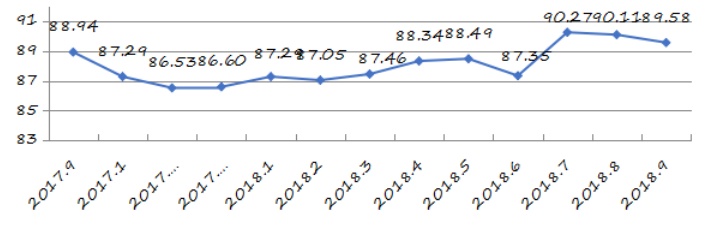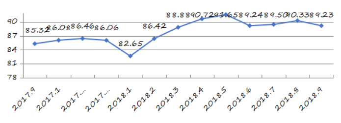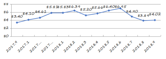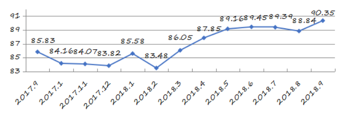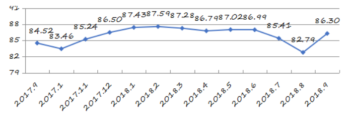國家統(tǒng)計局深圳調(diào)查隊編制9月份深圳市城市交通文明指數(shù)為87.02分,比上月增加0.05分,比上年同期增加2.06分;深圳市城市交通文明進步指數(shù)為-0.05 % (見圖1)。