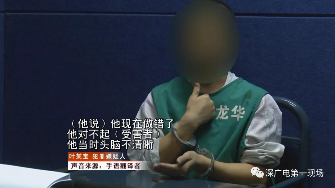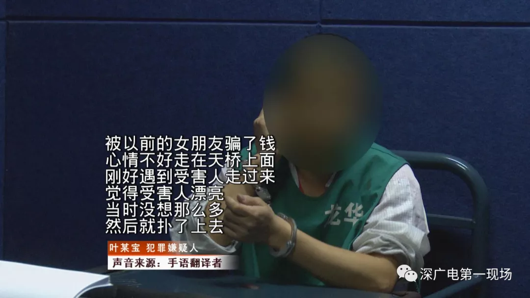 今天上午,記者在龍華油松派出所,見到了犯罪嫌疑人葉某寶。葉某寶是安徽人,今年31歲,在龍華區(qū)某工廠工作。在采訪時(shí),記者發(fā)現(xiàn),犯罪嫌疑人葉某寶是名聽障人士,通過手語交談后了解到,11月2號(hào)晚上七點(diǎn)多,他途經(jīng)建設(shè)東路人行天橋時(shí),對(duì)小王起了“歹心”。