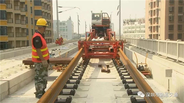 從施工現場可以看到,鋪軌機把長軌放入無碴道床就位,當鋼軌最后精準就位后,要求正負誤差不超過1毫米。目前鋪軌進度至少每天7公里,11日上午從金沙站開始不停歇作業(yè),到下午兩點鋪軌作業(yè)已臨近深圳。項目建設者表示,大約本月20號鋪設到深圳機場北站。