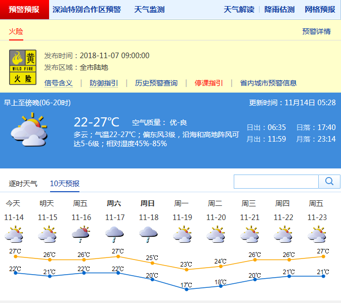 深圳新聞網(wǎng)11月14日訊(記者 陳婕)@深圳人,溫度并不高的中午,適合出去吹吹小風,散散小心,睡睡小覺。趁天氣好,還可以曬曬被子!過幾天天就沒那么好了,距離周末的冷空氣還有幾天準備時間,這次不會讓你們太失望,都可以準備好長袖了!